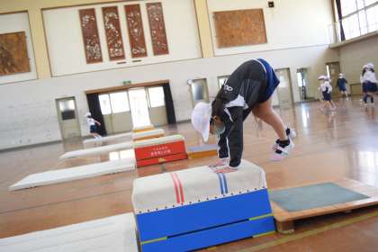 たいいくでは 「とびばこあそび」が はじまりました。
