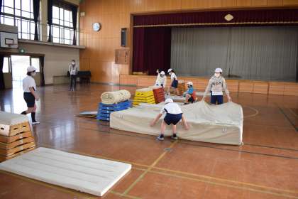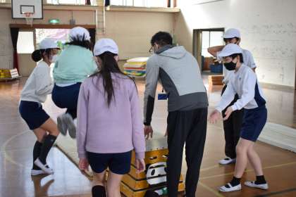 今日は,第二回目のとび箱です。ねらい2が始まり新しい技に挑戦しました。ALTの先生が体育では,どんな授業をしているのか見に来てくれました。安全に気を付けて頑張っています。