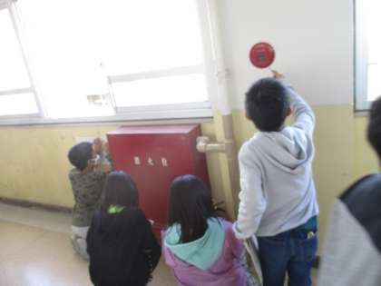 社会では,火事からくらしを守ることについて学習しています。消防士や消防団の仕事を知り,今週は,学校の中の火事へのそなえについて調べました。