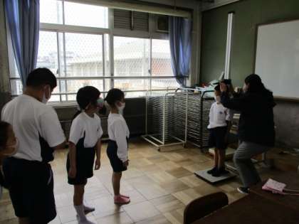 今日は身体計測がありました。養護の藤本先生に今流行りの感染症対策について学校でできることについてのお話をしてもらったあと,身長と体重を測りました。少しずつ成長していたみたいでとても嬉しそうでした。