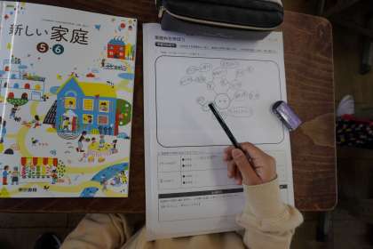 家庭生活から思い浮かぶことをワークシートに書き入れていき,意欲的に学習しようとする姿が見られました。