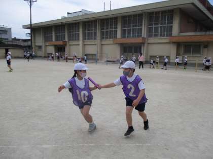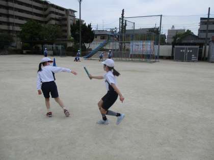 チームで走順を決めて,スムーズにバトンを渡す練習をしました。