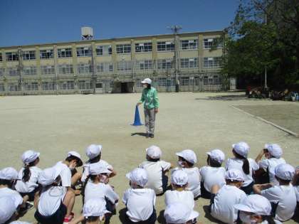 50m先のコーンを目掛けて,今自分が走れる全力で最後まで走りきりました。
