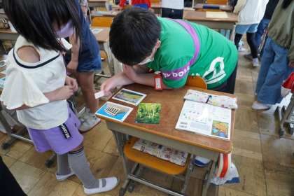 1枚の写真の「先」から広がる世界はどのようなものになっているのか,想像して絵に表す学習です。