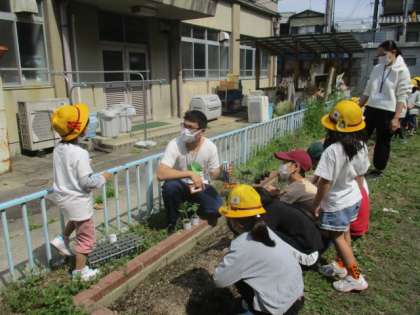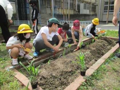 一年生はアサガオの種を蒔きました。