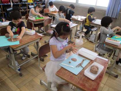ねんどの学習に一生懸命取り組んでいます。