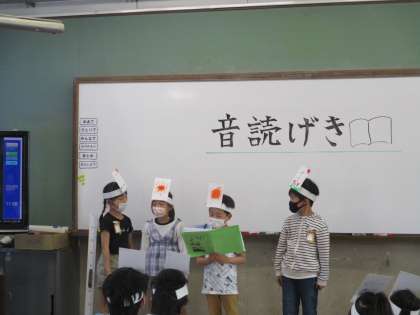 みんなでそろえて せりふを言ったり,うごきを つけてみたりと,それぞれのグループにいろいろなくふうがあり,とてもすてきな音読はっぴょうかいになりましたね。
