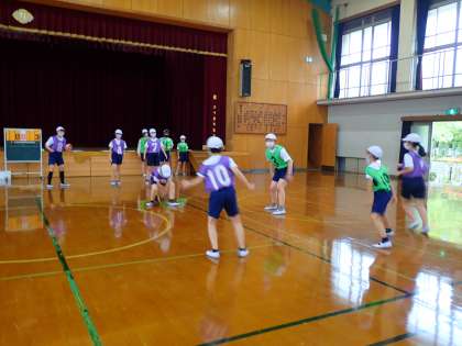 今は入り混じる従来のようなゲーム形式でゲームを行うことはできませんが,入り混じらない工夫をして,ゲームに取り組んでいます。