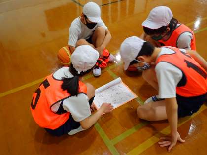作戦タイムには,それぞれのチームで,次のゲームに向けた話し合いが進められていました。