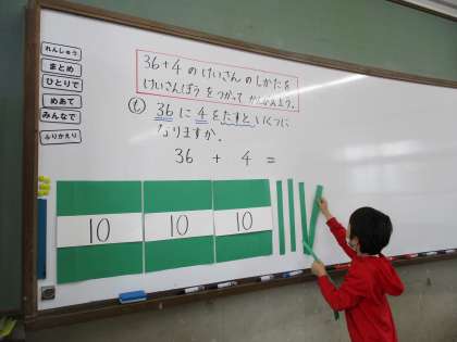 10のたばや,ばらのけいさんぼうをつかい,なん十をつくると,こたえが出せることに気づきました。