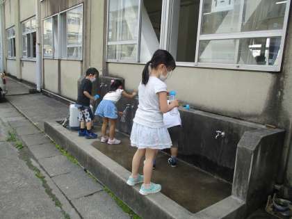 昨日あさがおの種まきをしたので,今日から毎日の水やりが始まりました。