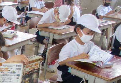 「読書タイム」では,いつもしゅう中して本を読んでいます。