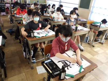 しんにょうが難しいポイントでしたが,「丁寧に,細く入って太くし右にはねる」を意識して書くことができました。
