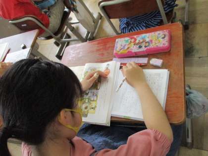 今日は漢字の広場をしました。漢字の広場は,2年生で習った漢字を使って物語を書くお勉強です。漢字を上手に使いながら絵に合わせて文章を書くことができました。同じ絵でも,子どもたちによってお話の書き方が違って,その後の交流はすごく盛り上がりました。