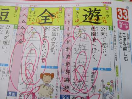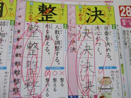 新出漢字を学習するときは,一文字ずつ言葉集めをしたり指ペンで書き順を確認したりしています。また漢字ドリルに,気をつけるポイントを赤で書きこんでいます。それぞれ気をつけるポイントは違っていいねと声を掛けていると,だんだん自分が苦手なところがわかってきたようで,気をつけることも言葉で書き込みながら丁寧に学習する子も増えてきました。