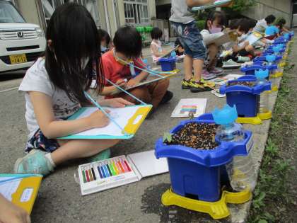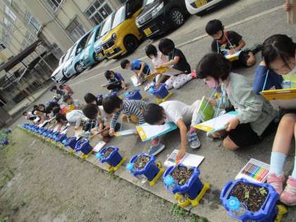 芽が出た様子をみんなでよく見て描きました。