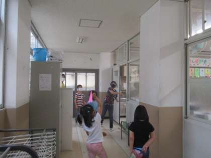 出来上がった紙飛行機を,的をよく狙ったり,遠くまで飛ばせるように工夫したりしながら楽しんで飛ばしていました。