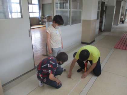 図画工作の学習で作った紙飛行機を使って,長さを測る学習をしました。