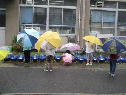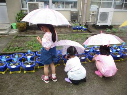 今日は雨降りが続いていたのですが,それでも子どもたちはあさがおの様子を見にいっていました。