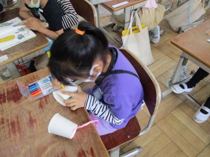 図画工作の学習では,あさがおとお話するための「ちょうしんき」を作りました。