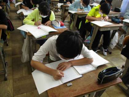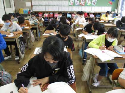 算数では,3〜5年生の復習問題に取り組みました。黙々と問題に取り組み,終わった子は困っている子に声をかけ,教え合う姿が素敵でした。
