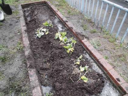 大きなプランターでもミニトマトを育てています。たっぷりの土で育てると大きく育つようです。ジャガイモやサツマイモも畑で育てていきます。