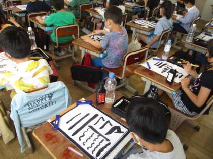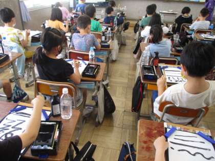 今日から書写の学習が始まりました!まずは,準備の仕方や筆の持ち方の勉強からスタートしました。みんな,筆に込める力の大きさを変えて,様々な線を書くことができました。