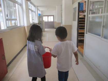 ほうき,雑巾等を使って隅々まできれいにしようとする姿が見られます。