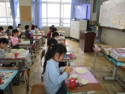 きゅうしょくの時間はしっかり もくしょくするすてきなすがたが見られます。
