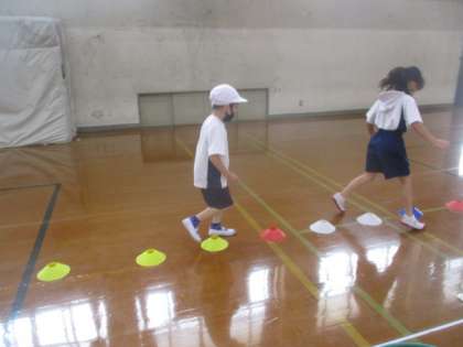 2周,3周とまわるにつれてレベルアップした動きを取り入れ,楽しそうに活動していました。