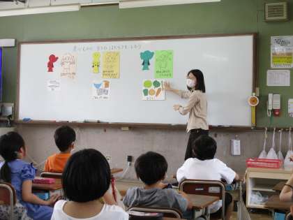 今日はに栄養教諭に来ていただいて食の指導の授業を受けました。アカレンジャー・キレンジャー・ミドレンジャーそれぞれに役割があることに気付き,栄養バランスについて考えることができました。
