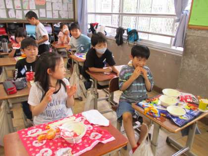 今日の給食に冷凍みかんが出ました。子どもたちはとても喜んでいて「つめたくておいしいー!」と言いながら嬉しそうに食べていました。
