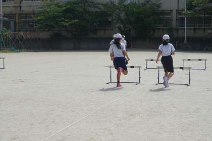 今日からハードル走が始まりました。一時間目だったので,準備の仕方について知ったり,自分の跳びやすいインターバルを確かめたりしました。