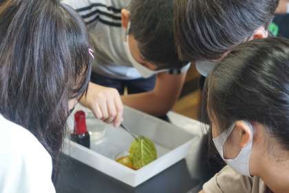 葉っぱを煮るために火も使ったので安全に気を付けながら実験を行いました。