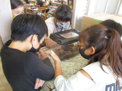 「かわいー。」や「いっぱいえさを食べてる」と大喜び。