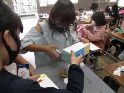図工では作品作りを進めています。