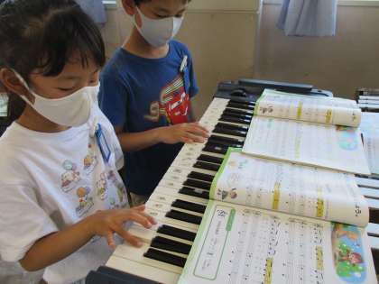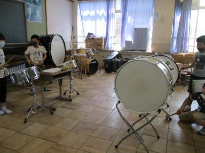 今日は「ゆかいな木きん」の曲を音楽室に行って合奏しました。木琴・ピアノ・たいこなどに分かれてそれぞれのパートごとに演奏したあと,みんなで合わしてみました。楽器を使うのが楽しかったみたいで,目を輝かせながら活動していました。