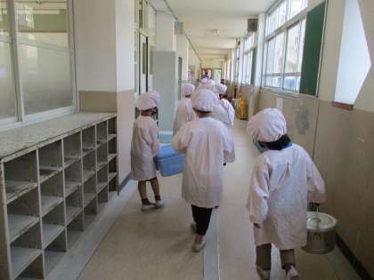 当番のやり方にも慣れてきて,みんなが美味しく給食が食べられるように,一生懸命みんなで運んでいます。
