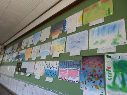 図画工作科では,「音のする絵」が完成したので,鑑賞をしました。