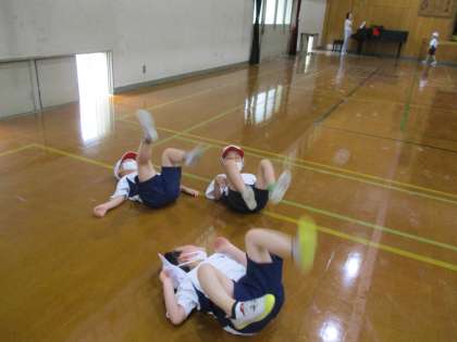 体育「むしになって」の学習では,はちやちょう,だんごむしになって自由に動きました。