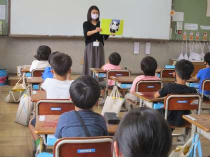 子どもたちは楽しい絵本に夢中になってきいていました。