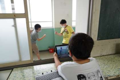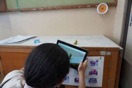 図画工作科の「形が動く 絵が動く」では,GIGA端末(タブレット)を使って短編アニメーション(パラパラ漫画のタブレット版)に取り組んでいます。