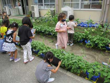 前回の写真と見比べて,「わあ,葉っぱが増えてる。」,「大きくなったなあ。」と子どもたちは話していました。