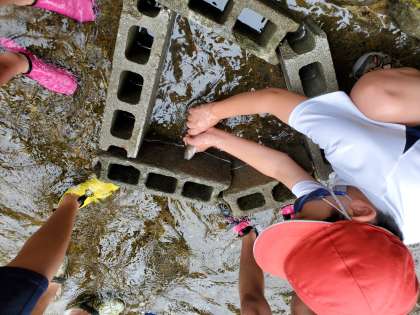 ぬるぬるとした魚を一生懸命追いかけて捕まえていました。