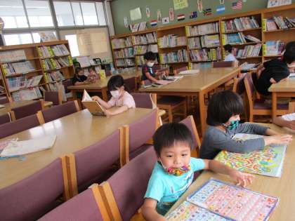 大型絵本を読み聞かせしている姿や第2図書館で熱心に本を読んでいる姿が見られました。