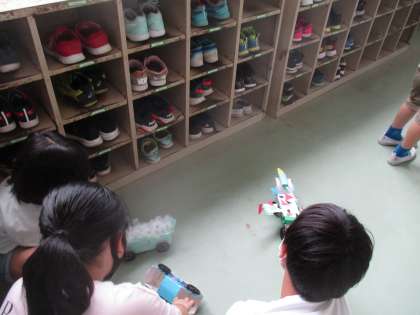 実際に動かしてみると,思ったように動かない車もあり,どうしたら動くか試行錯誤している様子でした。そんな中,1m近く動く車もあり驚いていました。