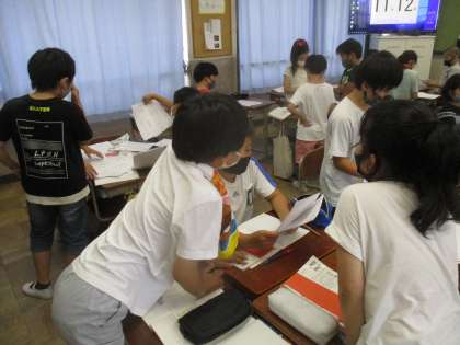 返ってきたアンケートをグループで協力して集計しました。