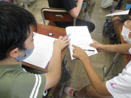 学習の最後は,学んだことをもとに問題を自作しお互いに解き合いました。