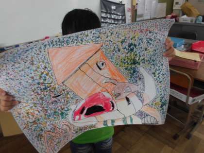 自由勉強で取り組んだ作品もさっそくもってきて,見せてくれました。何に取り組むかを考えるところから,時間をかけて取り組んだ作品。一つ一つの作品を大切に後日みんなで,鑑賞会をしていきたいと思います。