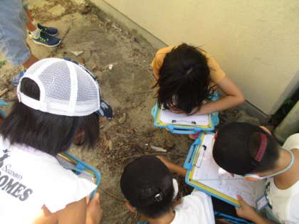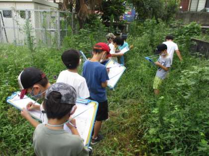 理科の学習で,校庭の生き物を探しに行く活動をしました。近くで見たり,ブロックをずらしてみたりと,校庭の隅々まで観察する姿がみられました!